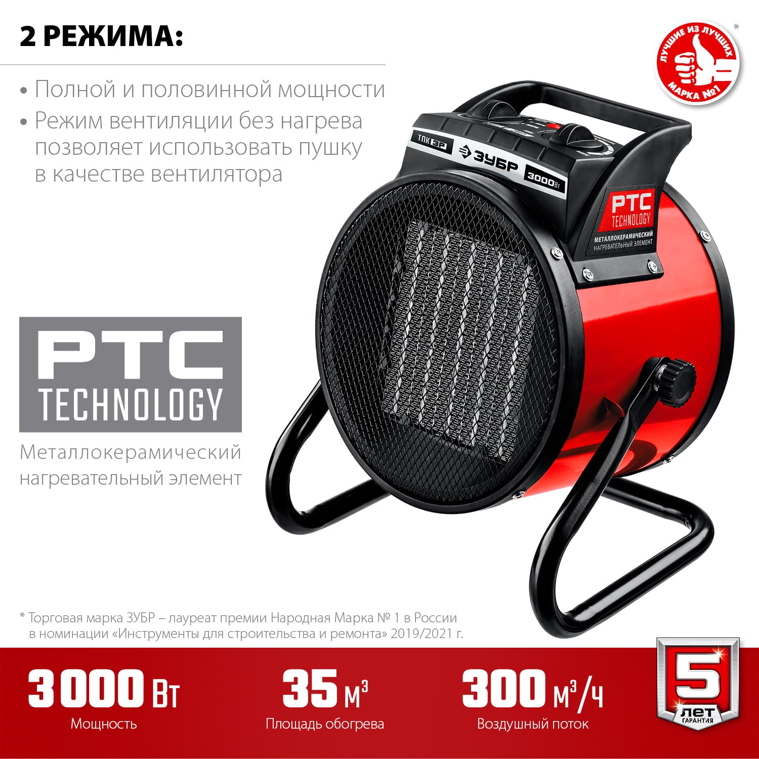 ЗУБР 3 кВт, электрическая тепловая пушка (ТПК-3Р), а также другие электроинструменты вы можете купить в интернет-магазине zubr-vrn в Воронеже