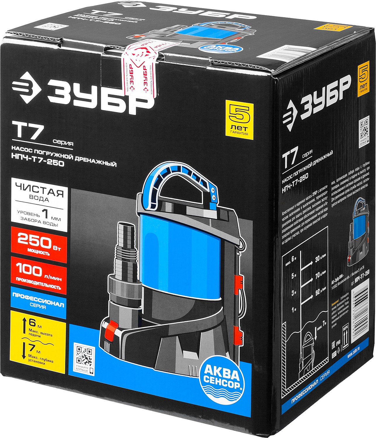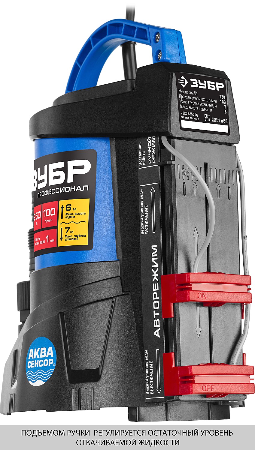 ЗУБР АкваСенсор 250 Вт, Дренажный насос с минимальным уровнем откачки, Профессионал (НПЧ-Т7-250), а также другие электроинструменты вы можете купить в интернет-магазине zubr-vrn в Воронеже