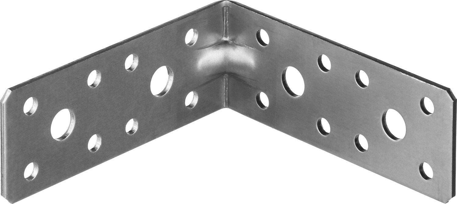 Угловые крепления (крепежные углы) – это основной элемент соединения перекрестно-перпендикулярных узлов. Монтаж перфорированного крепежа не требует предварительной врезки или создания пазов, выступов и прорезей. Формирование соединений возможно как с внутренней, так и с внешней стороны конструкции. Для монтажа деревянных конструкций совместно с перфорированными изделиями используются специальные ершеные гвозди с конической головкой или саморезы.