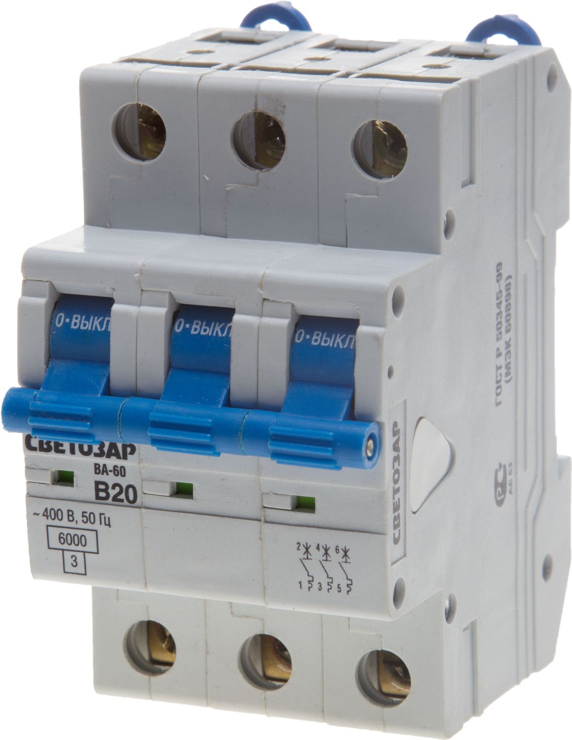 Автоматический 3-полюсный выключатель СВЕТОЗАР ″B″, 6 кА, 400 В отлично подходит для оборудования электроцепей ремонтируемых объектов. Применяется в жилых и административных зданиях. Главная особенность при выборе выключателя: он должен соответствовать напряжению и расчётному току цепи. Прибор выключает сеть при 3-5 кратном превышении номинальной силы тока. Выключатель превосходит параметры ГОСТ (от -5°С до +40°С), поскольку устойчив к температурам от -40°С до +45°С.