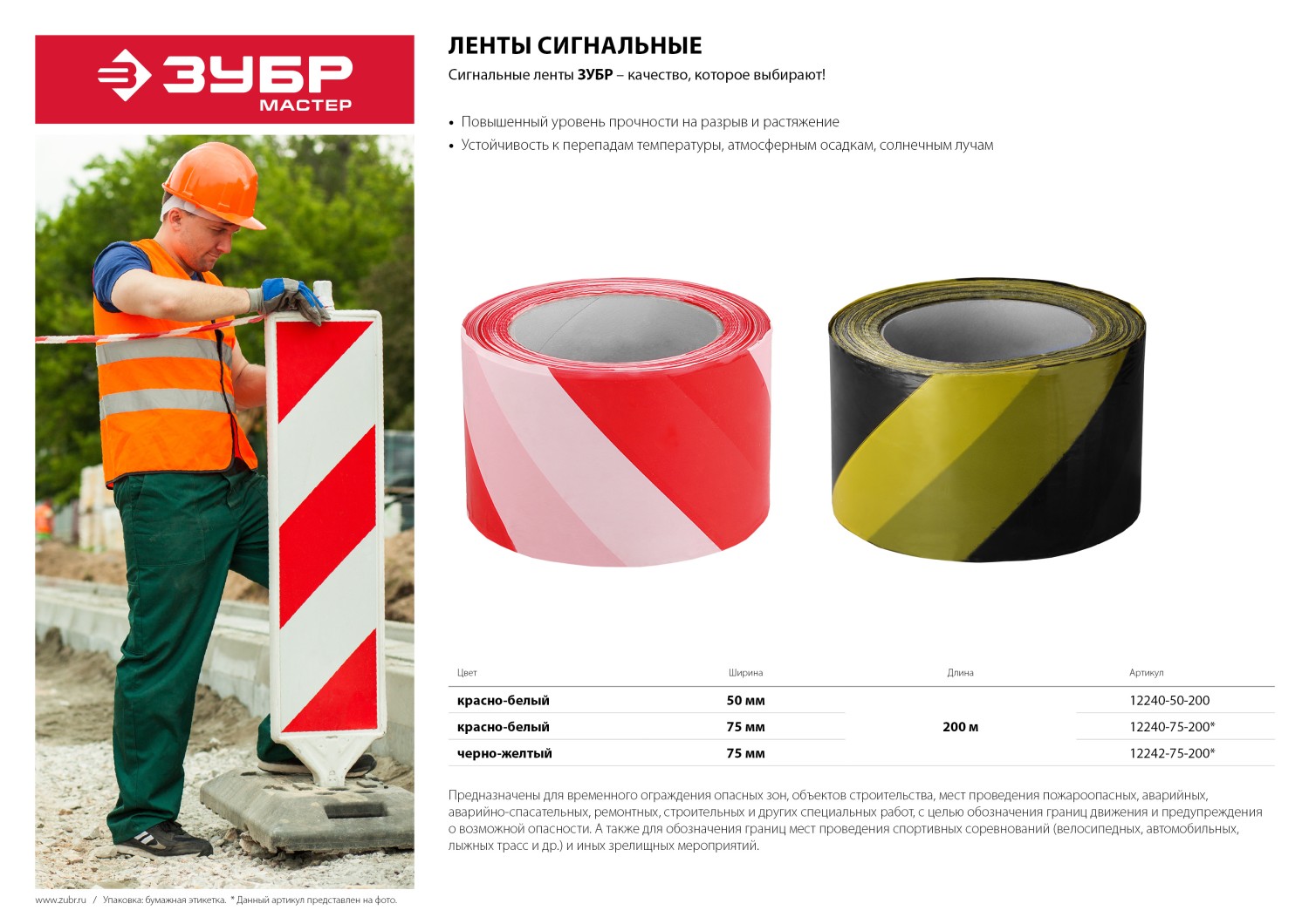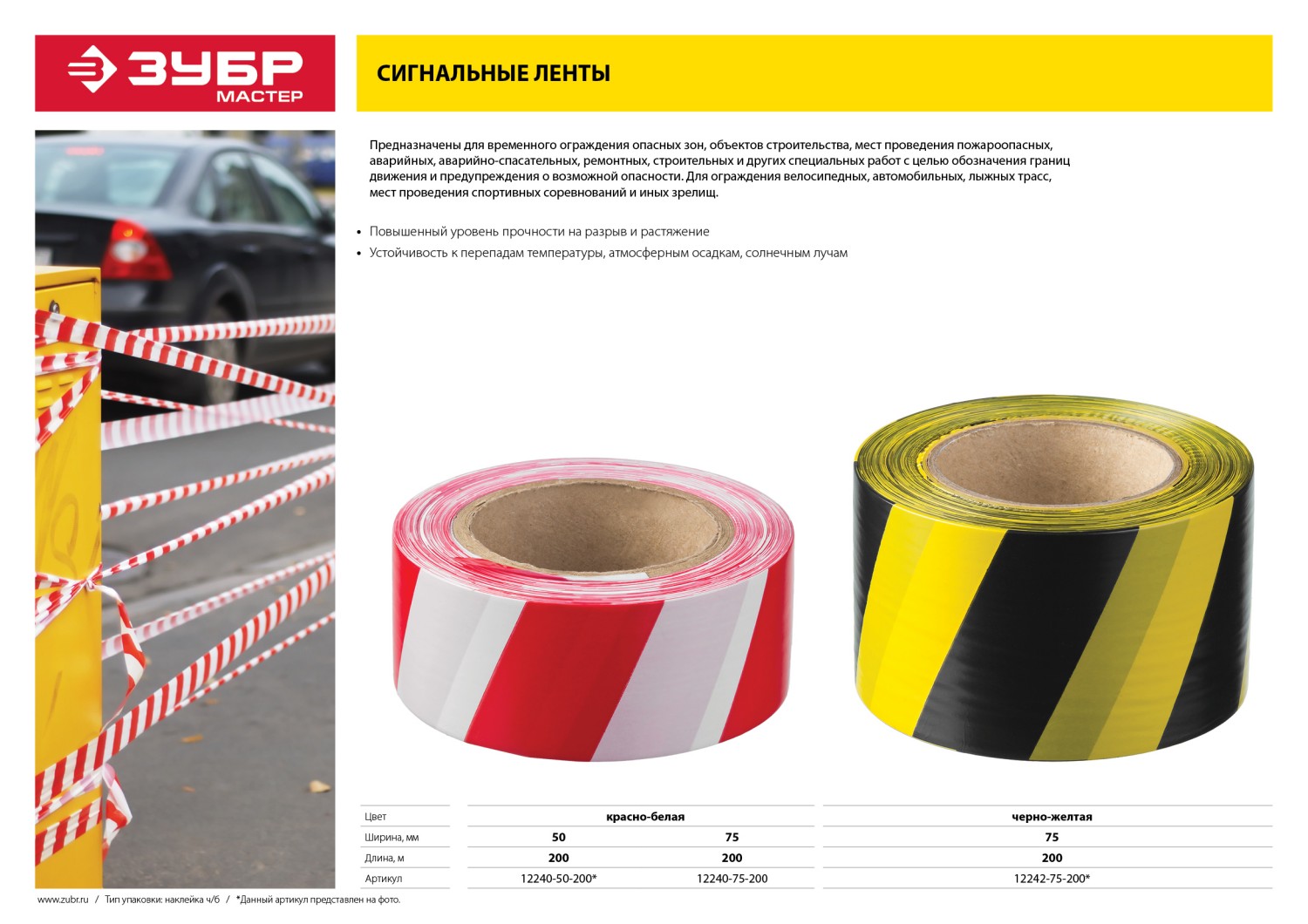ЗУБР 75 мм, 200 м, желто-черная, сигнальная лента (12242-75-200), а также другие хозтовары вы можете купить в интернет-магазине zubr-vrn в Воронеже