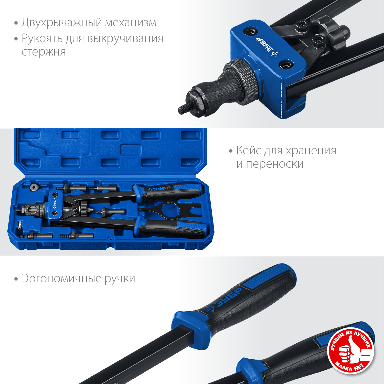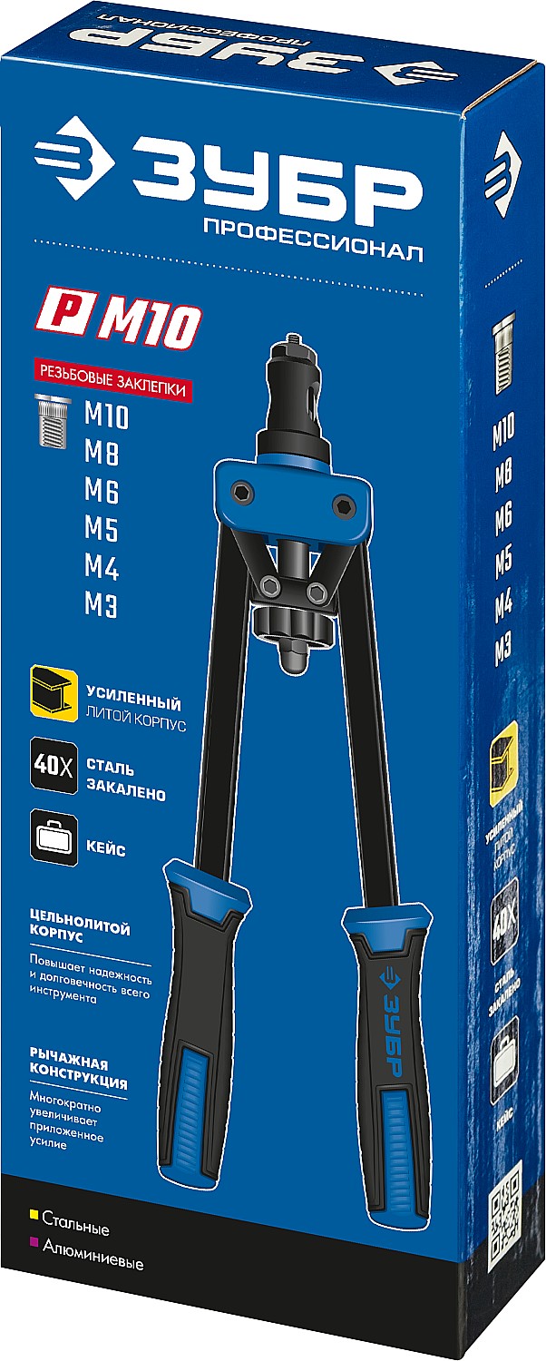 ЗУБР Р-М10, М3 - М10, резьбовой двуручный заклепочник в кейсе, Профессионал (31056), а также другой ручной инструмент вы можете купить в интернет-магазине zubr-vrn в Воронеже